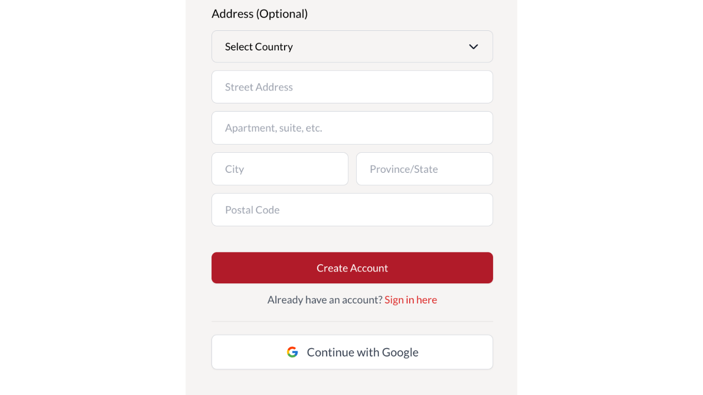 Select either Create Account or Continue with Google.