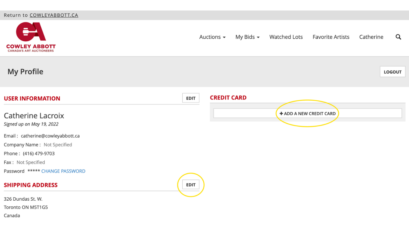 If you are the winning bidder, an automatic deposit of 10% of the hammer price will be charged to the credit card listed in your Auction Mobility profile. A member of our team will then contact you to organize the final payment and the collection or shipment of your artwork.