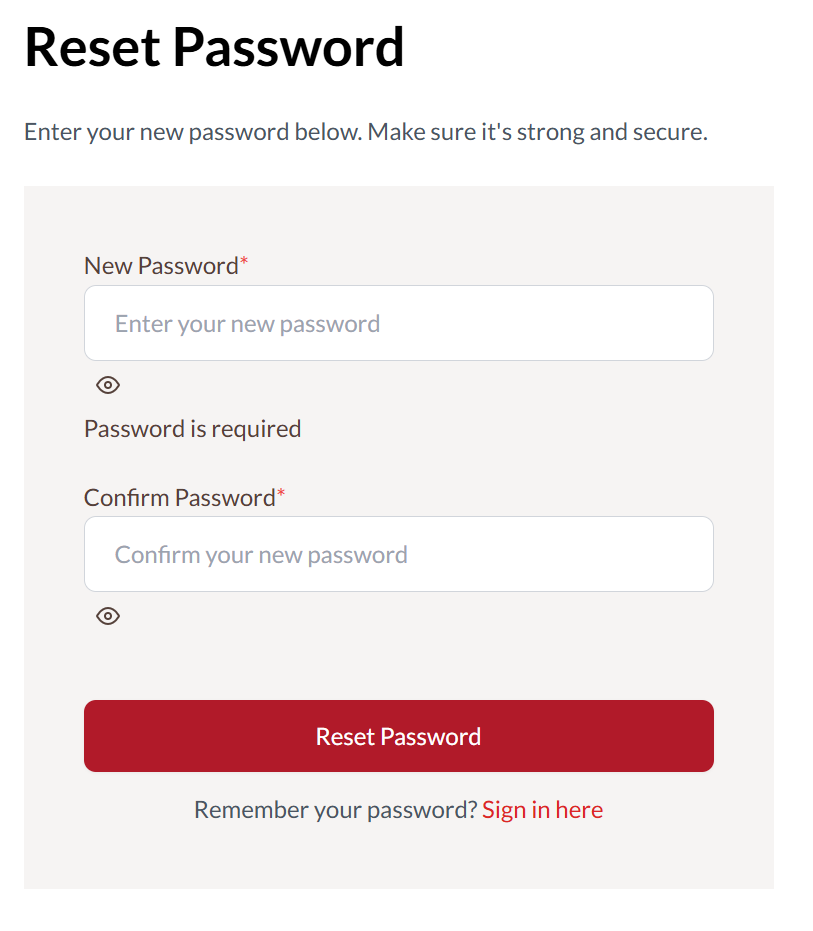 Then simply enter the passcode you receive on the Verify OTP screen and you will be automatically redirected to enter your new password (twice).